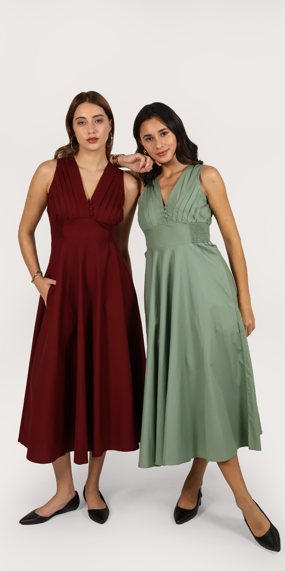 Serene Pleat Cotton Midi Dress – Cool Gray